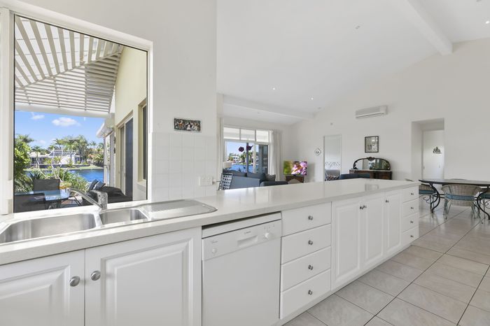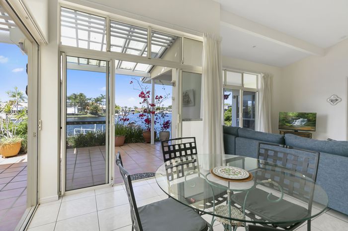 Immerse yourself in the tranquility of this waterfront holiday home, strategically positioned for an idyllic Noosa family vacation. Nestled in the peaceful enclave of Noosa Waters, this homely retreat boasts three bedrooms, 2 bathrooms, and an open-plan layout with tiled living areas surrounding a central kitchen. The single-level abode is thoughtfully air-conditioned in living area, ensuring your comfort and entertainment needs are met.