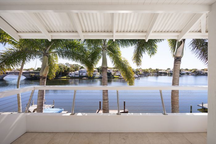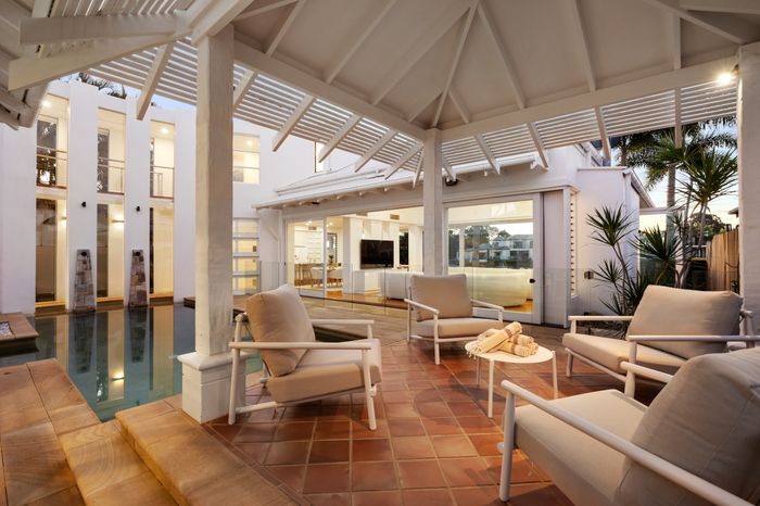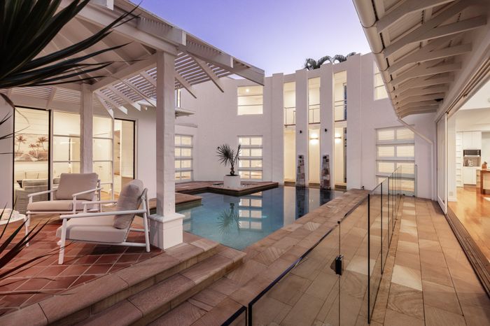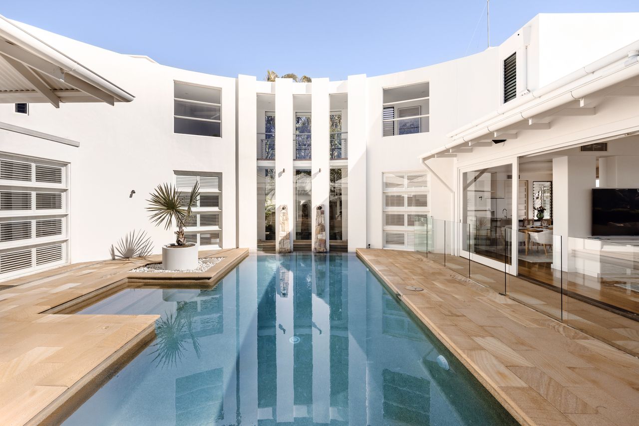 From the moment you step inside, expansive glass doors frame the shimmering waterways, creating a light-filled sanctuary where elegance meets tranquility. The heart of the home is an inviting central pool, perfect for cooling off on warm summer days, while spacious indoor and outdoor living areas provide the ideal setting for entertaining or unwinding.