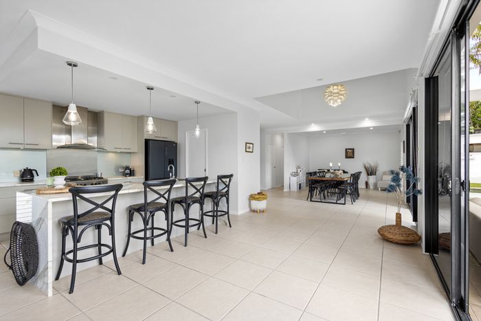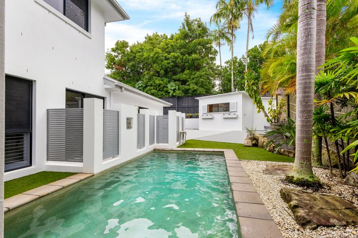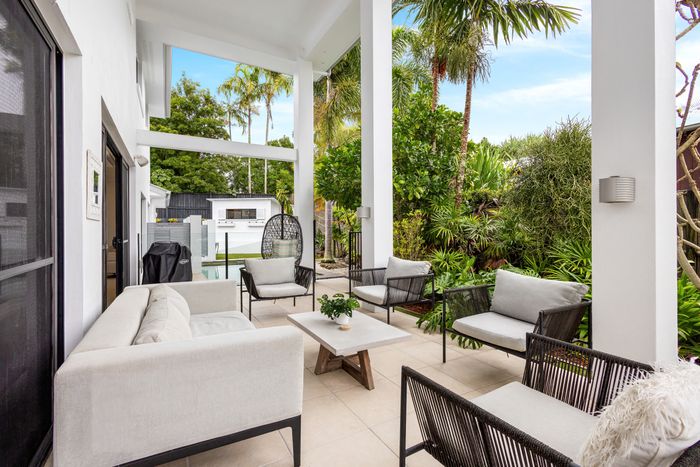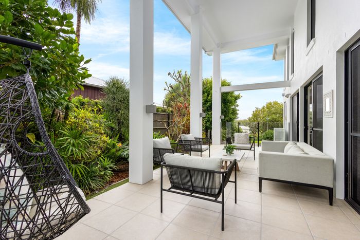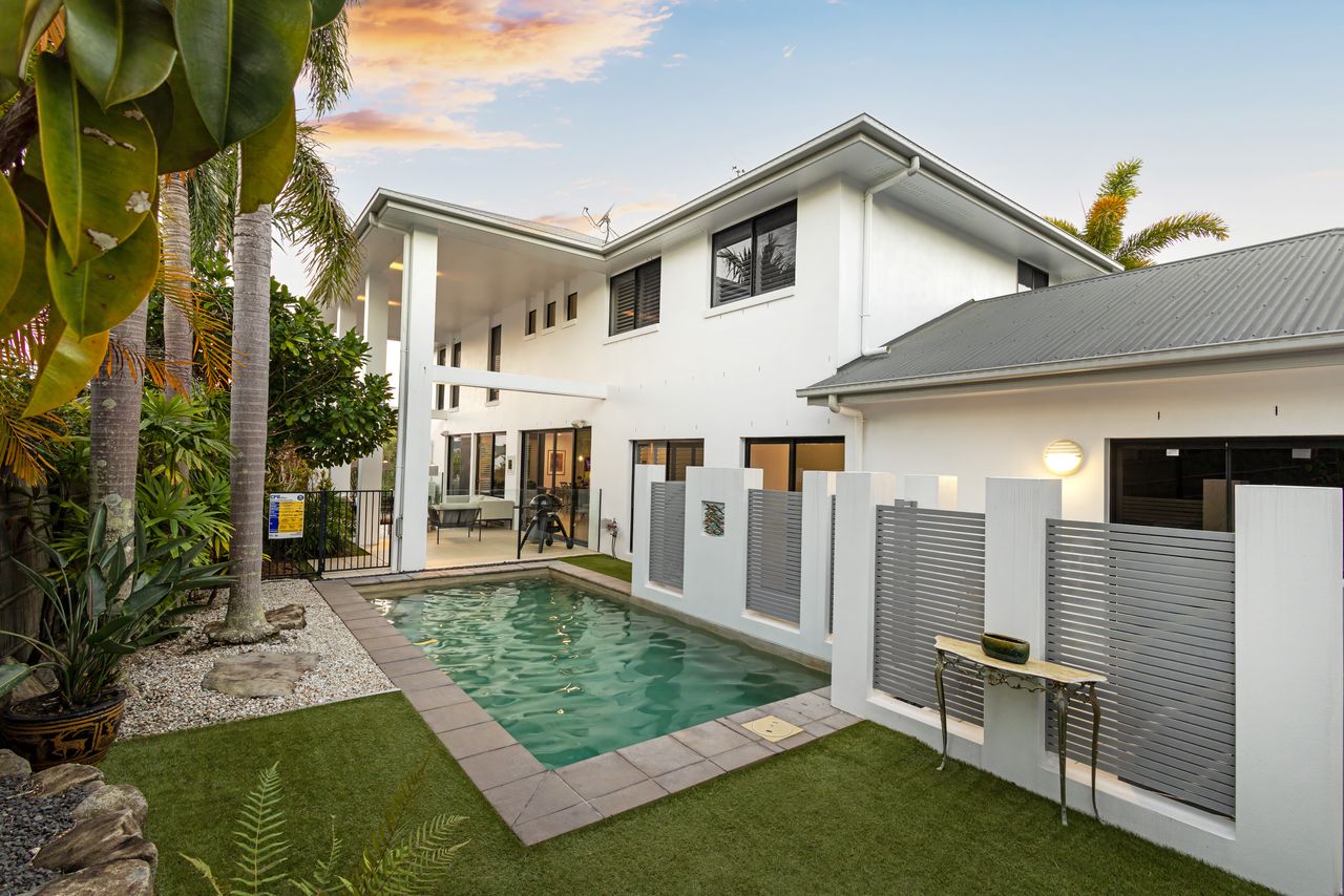 Outside, the alfresco area provides ample space to unwind, with a resort-style pool and lush gardens creating a private tropical oasis.