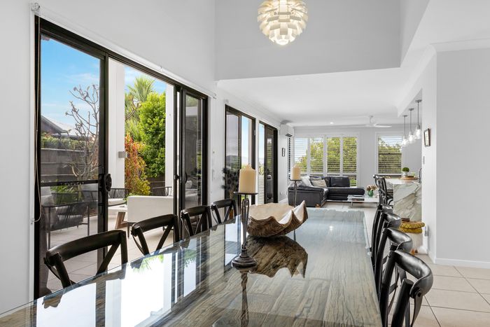 2 Perched in an elevated cul-de-sac with stunning views towards Noosa Heads, this contemporary retreat offers the ultimate in luxury and relaxation. Designed for effortless entertaining, the home features soaring ceilings, light-filled spaces, and a seamless indoor-outdoor flow, surrounded by beautifully landscaped tropical gardens.
