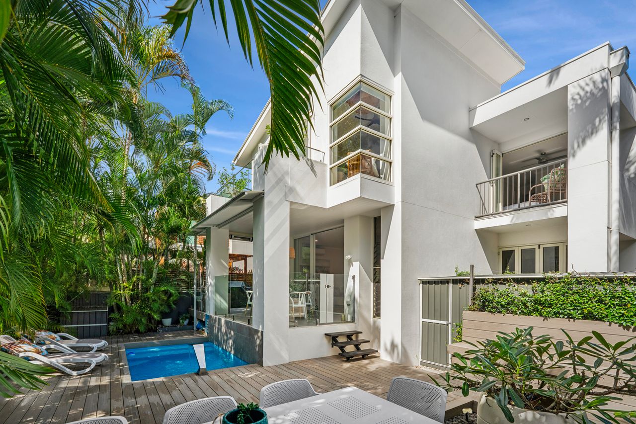Step inside and discover a light-filled sanctuary with open-plan living areas that seamlessly connect to a private north-east facing alfresco terrace. Surrounded by lush tropical gardens and ambient lighting, this outdoor space is ideal for entertaining, featuring overhead heating, a firepit area, and a stunning glass-framed swimming pool.