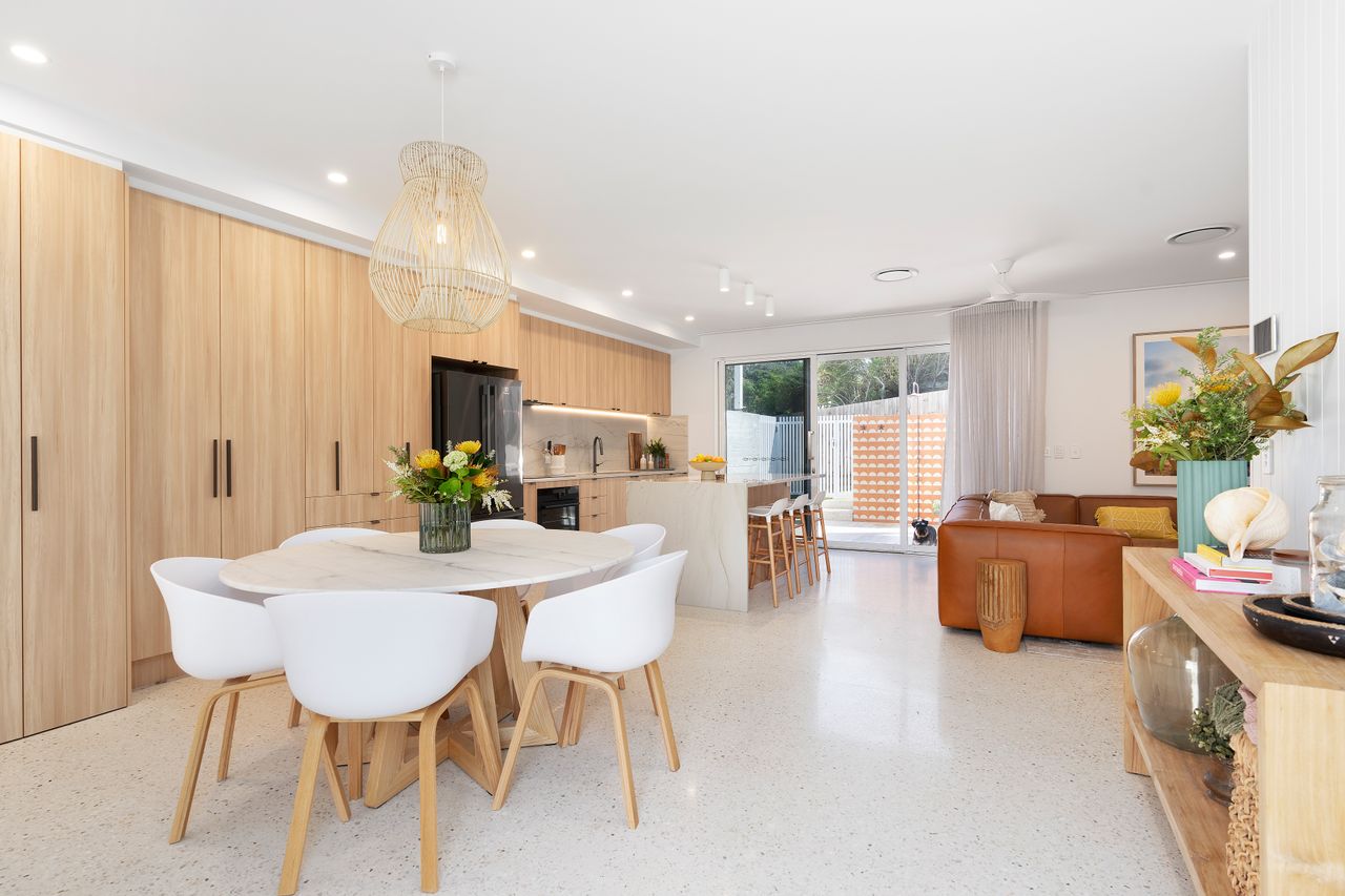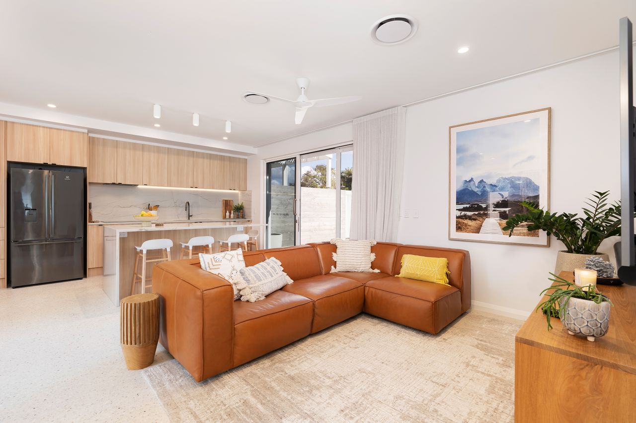 With eco smart doubled glazed windows this energy conscious home has been built for comfort, noise reduction from the busy holiday periods and energy retention in the quieter off season months. These great sliders open up to a beautiful green courtyard where you can feel and smell the ocean breeze whilst offering serene views and ensuring tranquillity. Ducted air conditioning throughout the property providing climate control to suit your needs, your stay promises to be both comfortable and relaxing.
