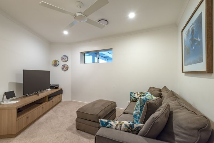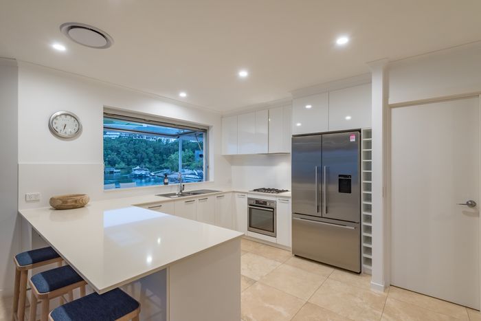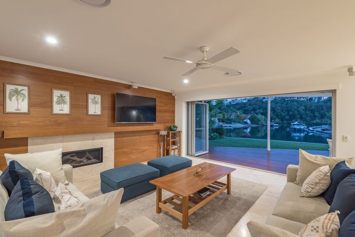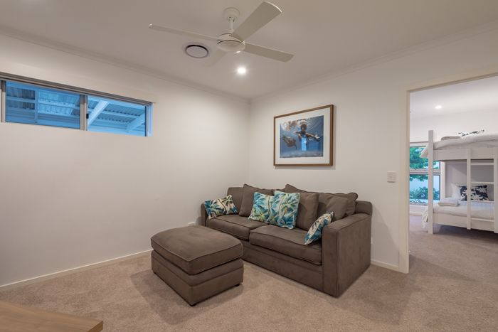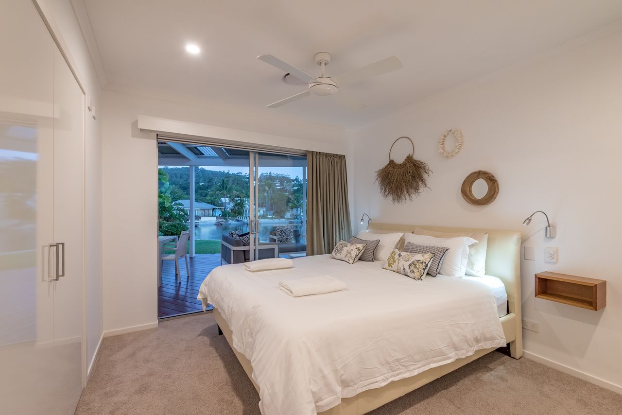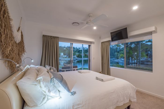 The master suite and the second king bedroom open out to waterside decks, allowing you to start your day immersed in serene views. The third bedroom features two singles, while the bunk room and media room provide the perfect domains for the kids' enjoyment. Bathrooms and storage solutions abound, ensuring convenience. Each bedroom is fully air-conditioned and equipped with its own smart TV.