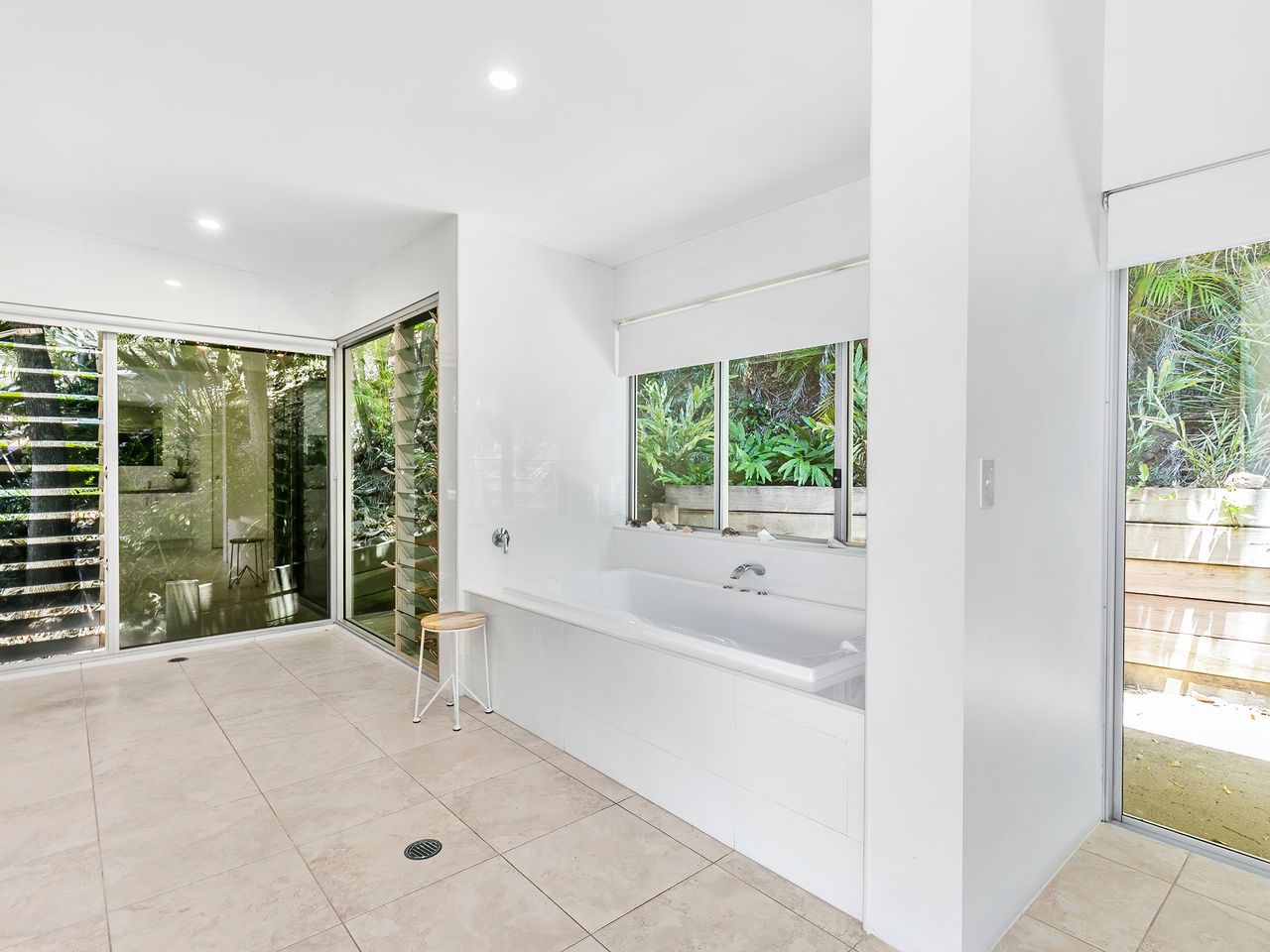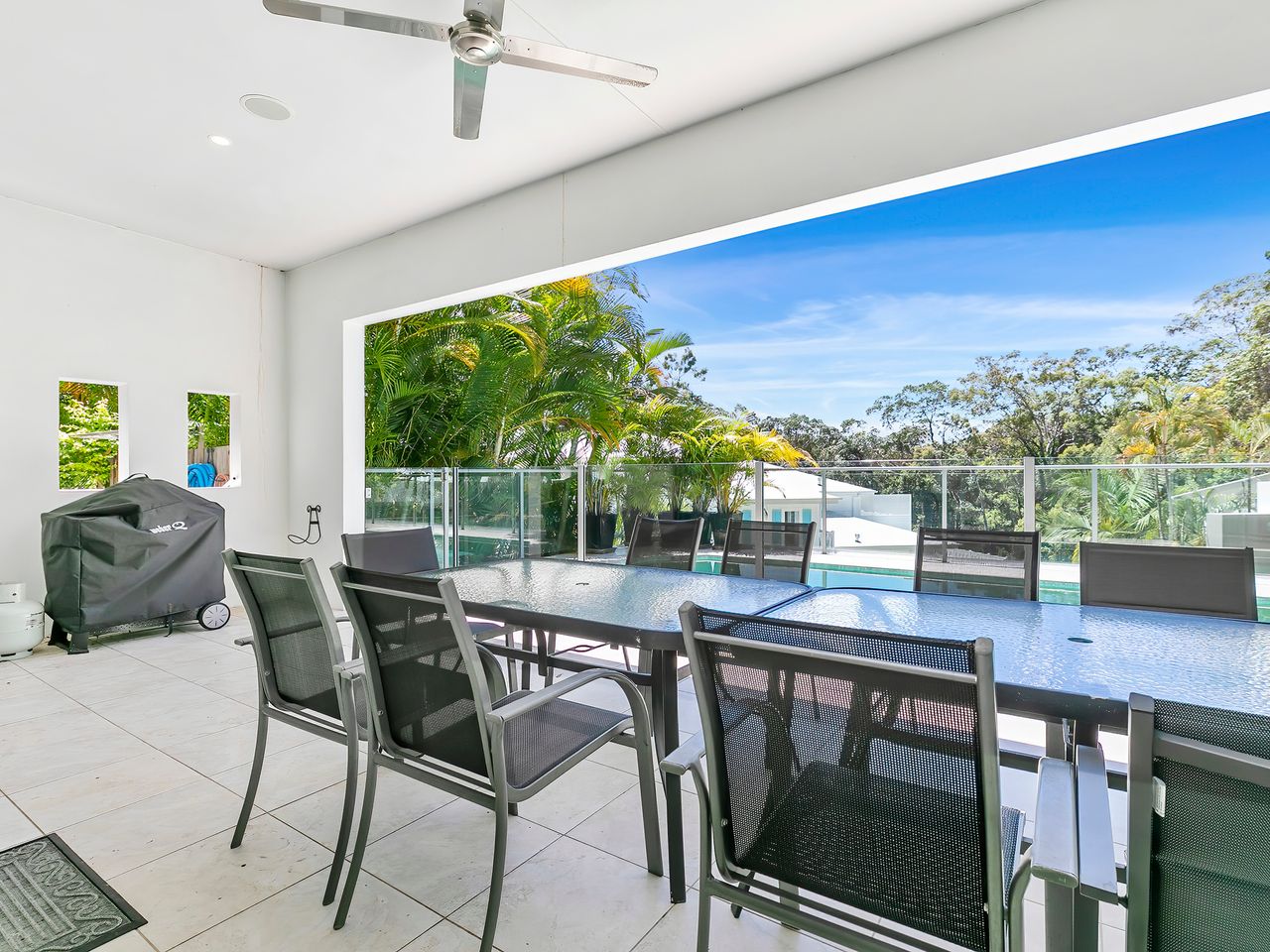The modern entertainer's kitchen seamlessly opens onto the poolside balcony, providing an expansive and inviting space. Here, you can revel in relaxation while enjoying breathtaking views of the Noosa National Park, which borders the property.