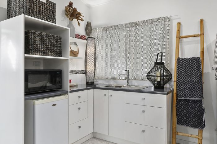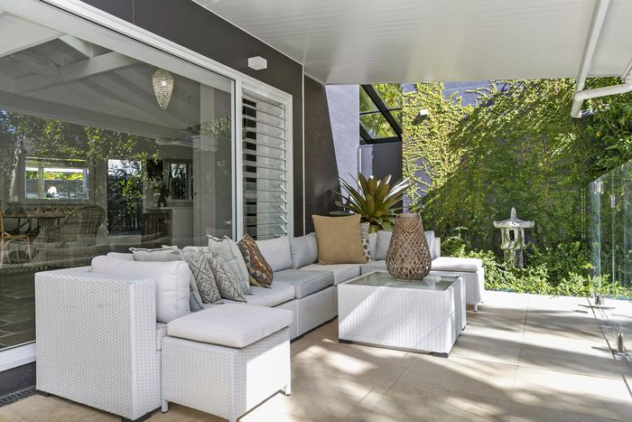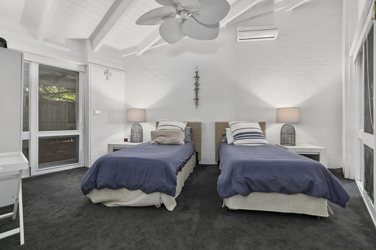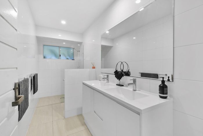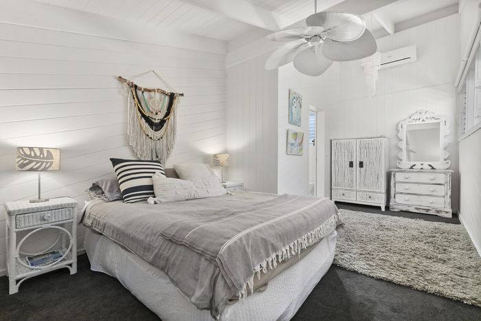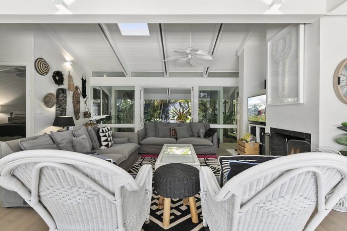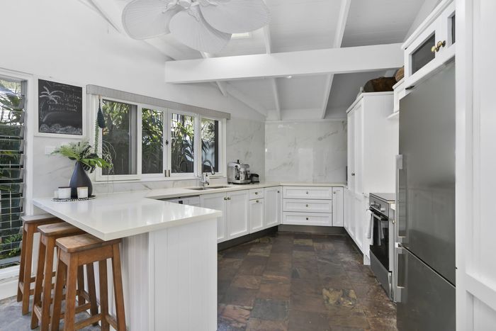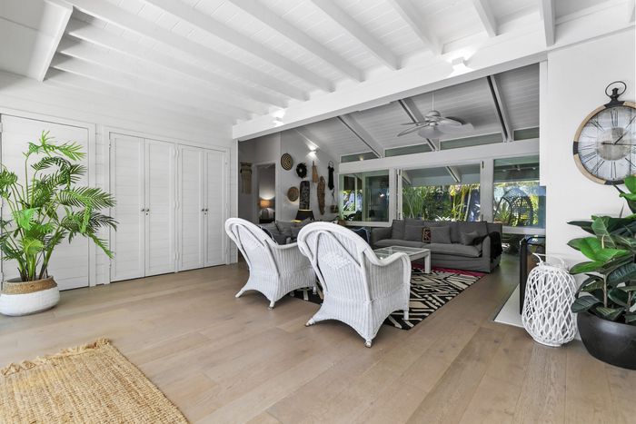 This fabulous open plan holiday home has great character and style . The home is unique in design and has a beautiful feel when you walk in the front door. Tucked away from the street ensuring exceptional privacy yet when you are inside the home it is open, light and relaxing, you could be anywhere. Recently renovated and meticulously maintained, with white cedar high raked ceilings and highlight windows illuminating your entire surrounds. All bedrooms are freshly presented in white, and elegantly styled. An additional advantage is the separate fourth bedroom which is a beach style studio/guest house with its own ensuite, kitchenette and private courtyard. With the open plan living area revealing natural stone flooring, the sunken lounge opens on both sides with full length glass doors to either an extensive covered alfresco space overlooking the exquisite pool with an amazing slate wall water feature and landscaped gardens or a relaxing tropical garden peace of paradise that backs onto Noosa National Park. The location is on Noosa Hill with a back gate access to the Noosa National Park. You can walk to Hastings street in ten minutes or walk to Sunshine Beach in half an hour, Everything is at your door step. The main house sleeps 6 guests; there are 3 bedrooms, two queen rooms and master with ensuite plus a room with twin beds.