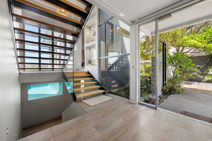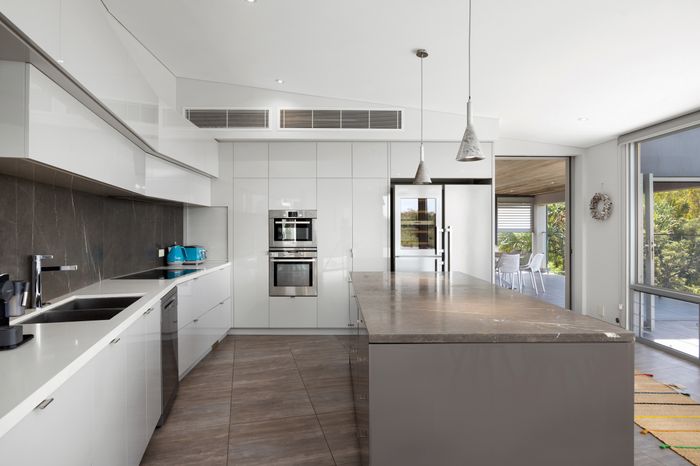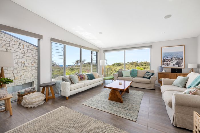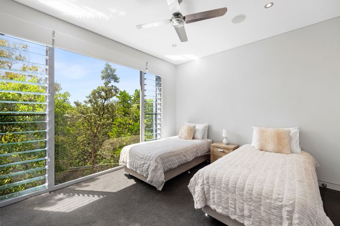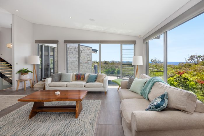 The lower level offers three beautifully appointed bedrooms, each with its own bathroom and access to private balconies overlooking lush gardens and the National Park. The main level is ideal for entertaining, with a spacious lounge room, gourmet kitchen, and dining area that opens onto a sprawling alfresco dining space with built-in BBQ, perfect for enjoying the breathtaking views.