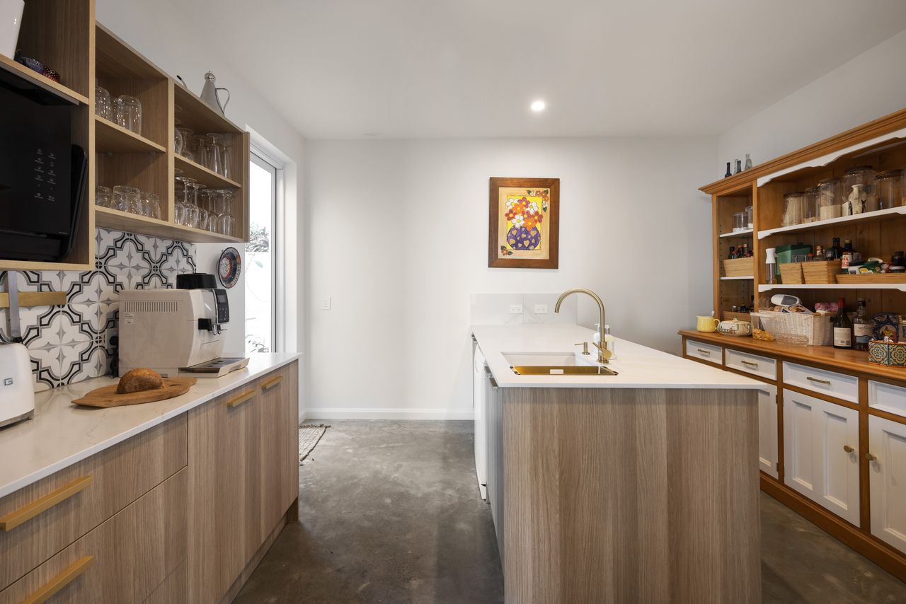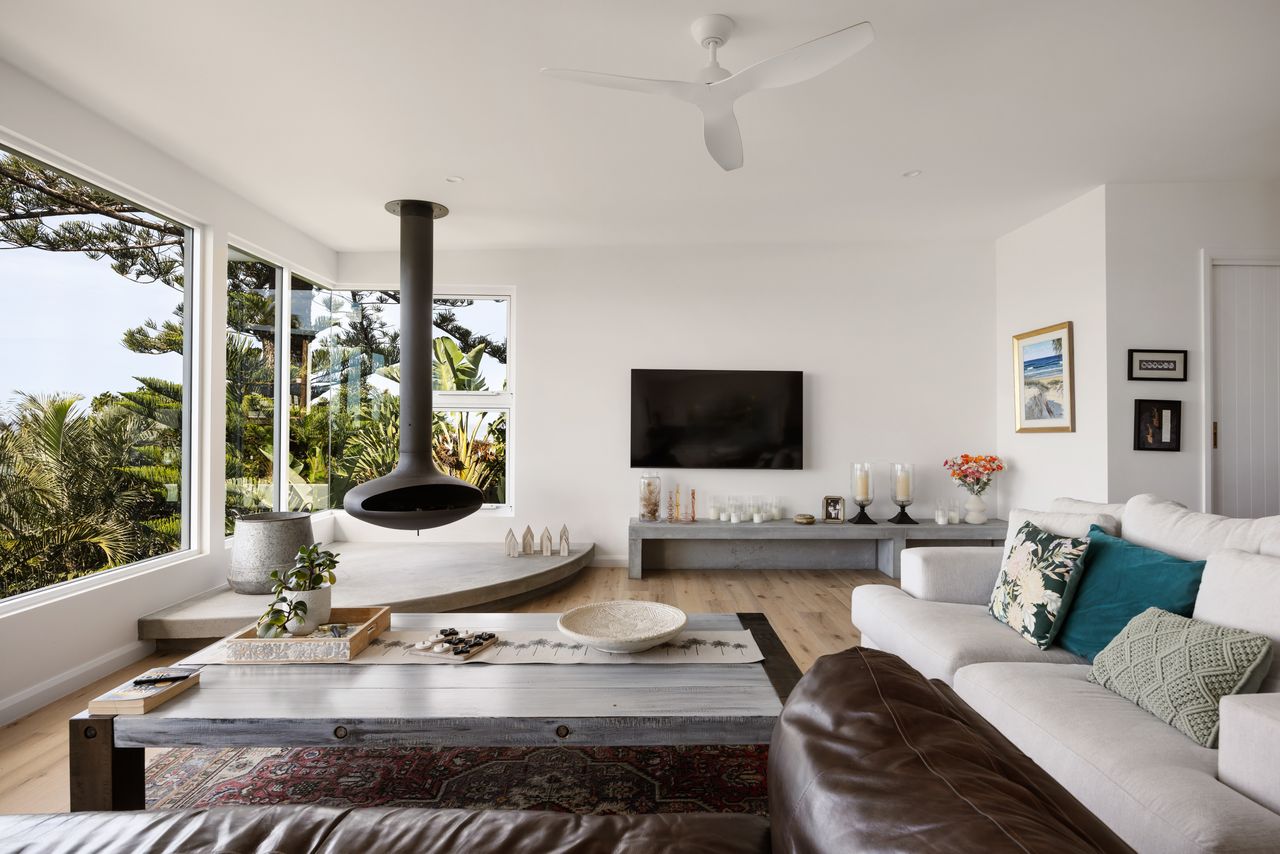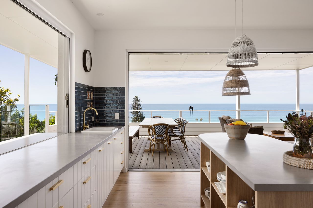 On the middle level, the open-plan kitchen, dining, and living areas flow seamlessly onto an expansive covered deck, where you can take in the spectacular views of the Pacific. This level also boasts a butler’s kitchen and walk-in pantry, as well as a guest bedroom with its own ensuite and private deck—ideal for those seeking a little extra privacy.