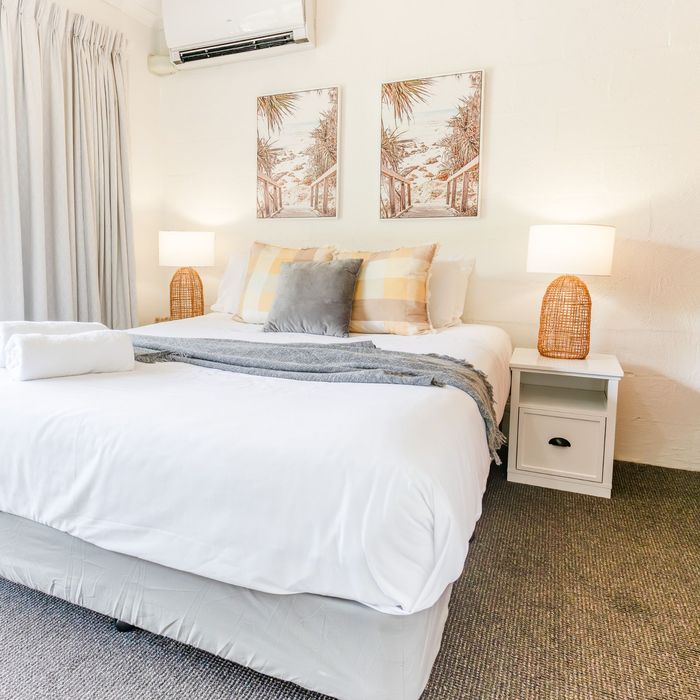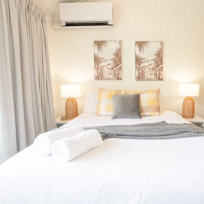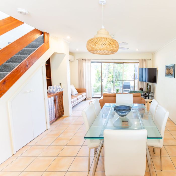 Spread over two levels, the townhouse is thoughtfully designed for a relaxed family getaway. Enter through your own private courtyard, ideal for enjoying your morning coffee or unwinding after a day at the beach. Inside, you’ll find tasteful coastal furnishings, a well-equipped kitchen, and full air-conditioning to keep you comfortable year-round.