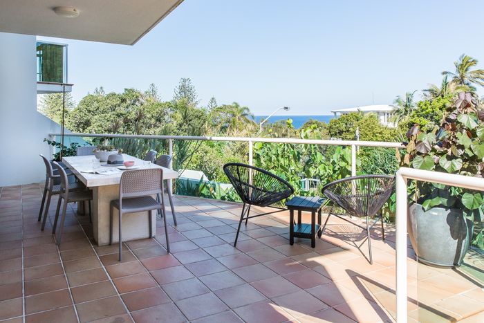 Perched above the renowned Sunshine Beach Village, this spacious 2-bedroom coastal apartment offers a blend of style, tranquility, and unmatched convenience. With sweeping ocean views and refreshing sea breezes, this retreat boasts an interior adorned with neutral tones, creating a chic and expansive living space.