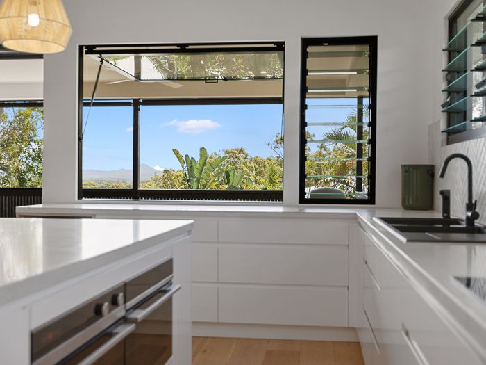 A flight of stairs will take you to the upper level that opens up to the living area and modern kitchen with state of the art appliances including dishwasher, fridge and microwave. Take in those sweeping Noosa Hinterland views on the large deck where you can sit and relax or entertain friends and family with a dinner on the Weber BBQ.