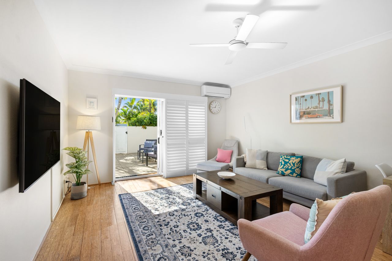 4 Nestled beneath a canopy of lush palm trees, this stylish two-bedroom villa offers the perfect blend of space, privacy, and convenience — all just a short stroll from the vibrant heart of Sunshine Beach. Set within a quiet, well-maintained complex, this peaceful retreat invites you to unwind and embrace the relaxed coastal lifestyle.