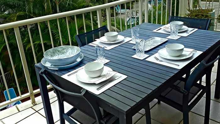 Indulge in the ultimate coastal retreat at our relaxing poolside unit in the Riverside complex along Gympie Terrace. This top-floor gem offers a serene escape with a North facing balcony overlooking the swimming pool and lush garden area, providing a perfect setting for your holiday.