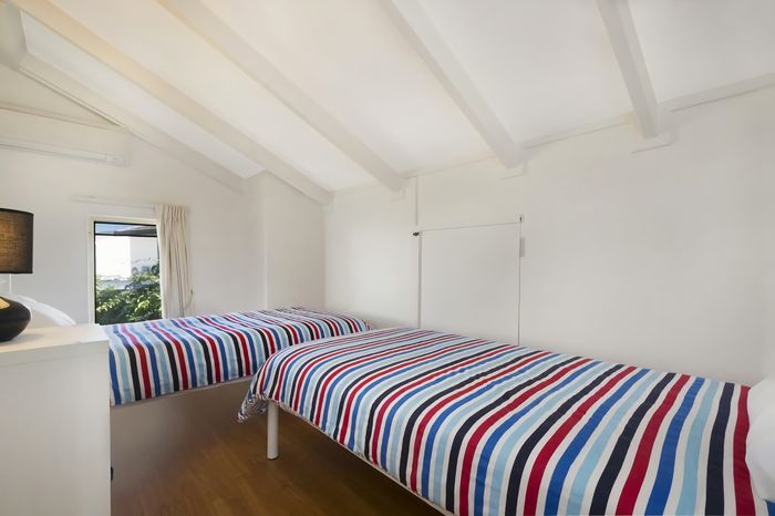 Up a flight of stairs to the second level, you will find the main bedroom with an ensuite and the main family bathroom. There is a cute attic room containing a bunk bed plus another bedroom with a queen bed. The securely gated backyard offers a fabulous entertaining area with an outdoor setting and a gas BBQ for summer evening dinners. There is a solar-heated pool to cool off in or enjoy a bask in the sun while watching the kids frolic with the pool toys provided. Double garaging accommodates a couple of cars, plus there is parking in the driveway or on the street out front.