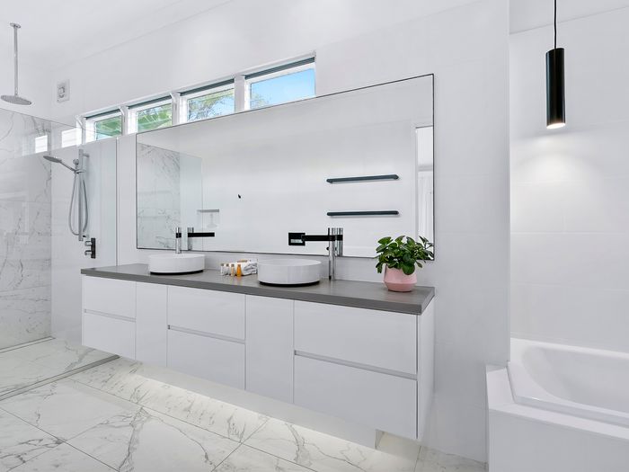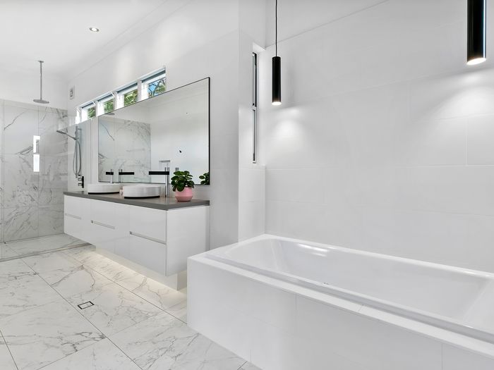Casa Breeza boasts two-way ensuites for the king and queen bedrooms, with a clever layout ensuring privacy. Upstairs, the king master bedroom ensuite connects to the children's room via a large walk-through robe. On the main level, the queen bedroom ensuite connects to the main level powder room, ensuring convenience and comfort.
