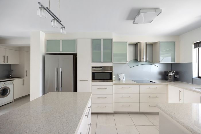 Inside, the apartment is designed for light-filled, effortless living. The open plan living and dining space flows seamlessly to the terrace through wall-to-wall glass sliding doors, creating an airy, coastal atmosphere cooled by gentle ocean breezes. The sleek, fully equipped kitchen with premium appliances makes dining in a pleasure, whether you’re whipping up a relaxed breakfast or sharing sunset platters with friends.